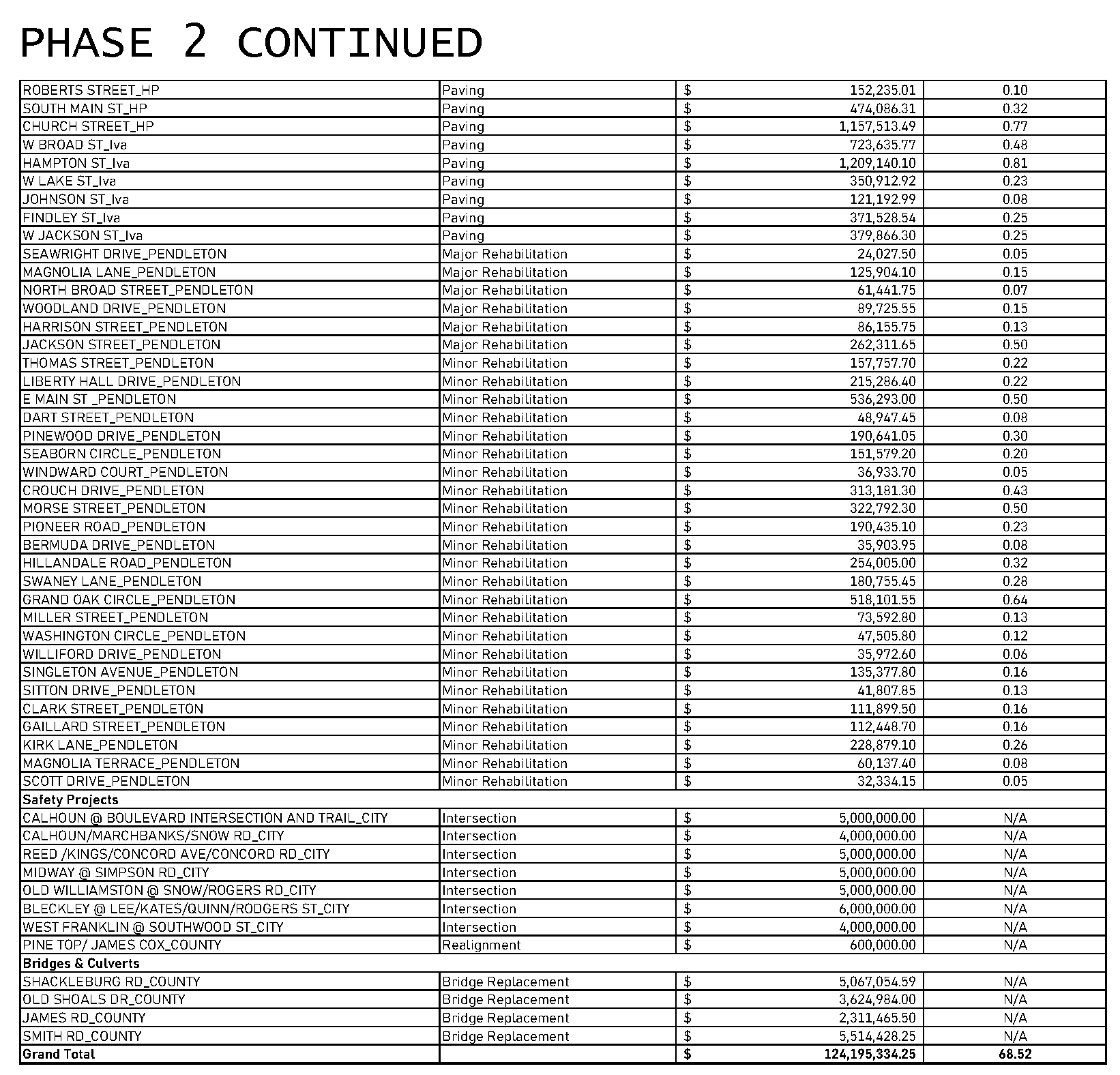 - Vandiver Road Pedestrian Safety to address pedestrian safety (Anderson County)